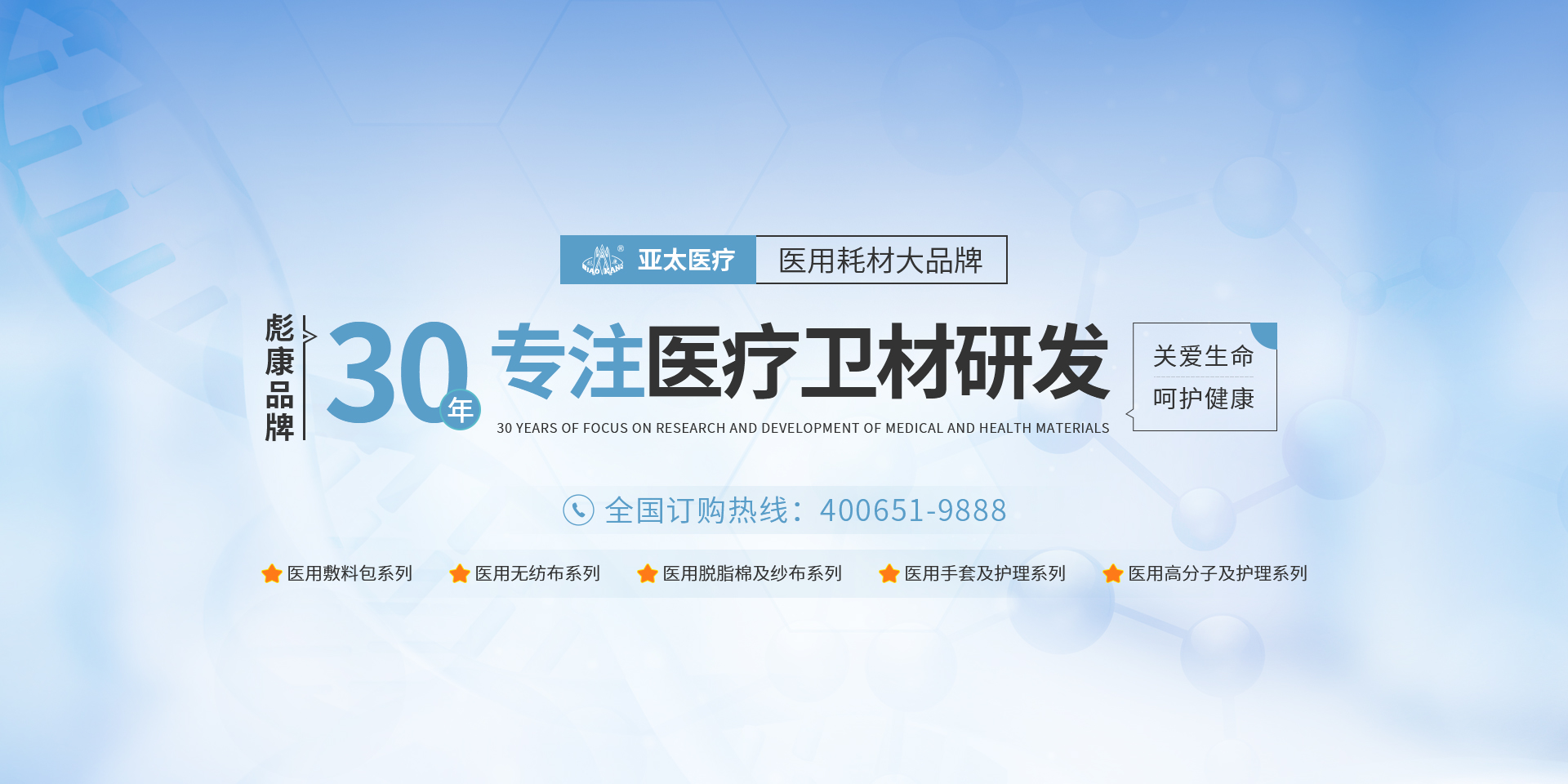 亞太始終專注于一次性醫療器械、衛生材料、高分子及敷料產品的研發、生產和經營,為人類健康事業的發展帶來深遠的意義